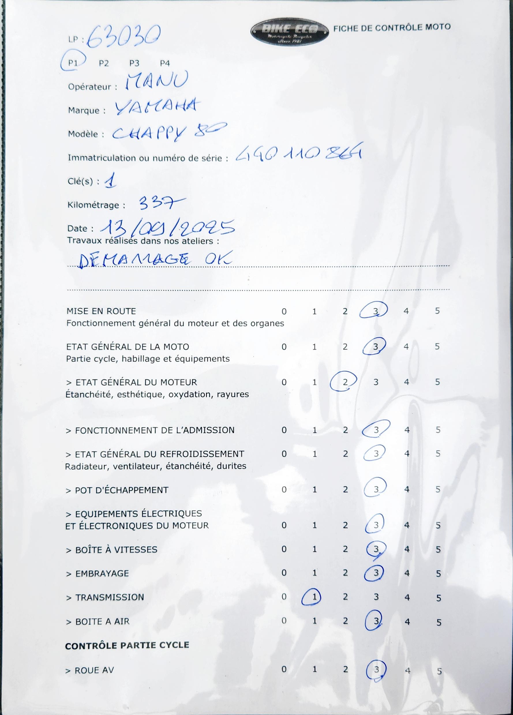 La moto démarre mais n'ayant pas d'historique il est nécessaire de la réviser avant utilisation.