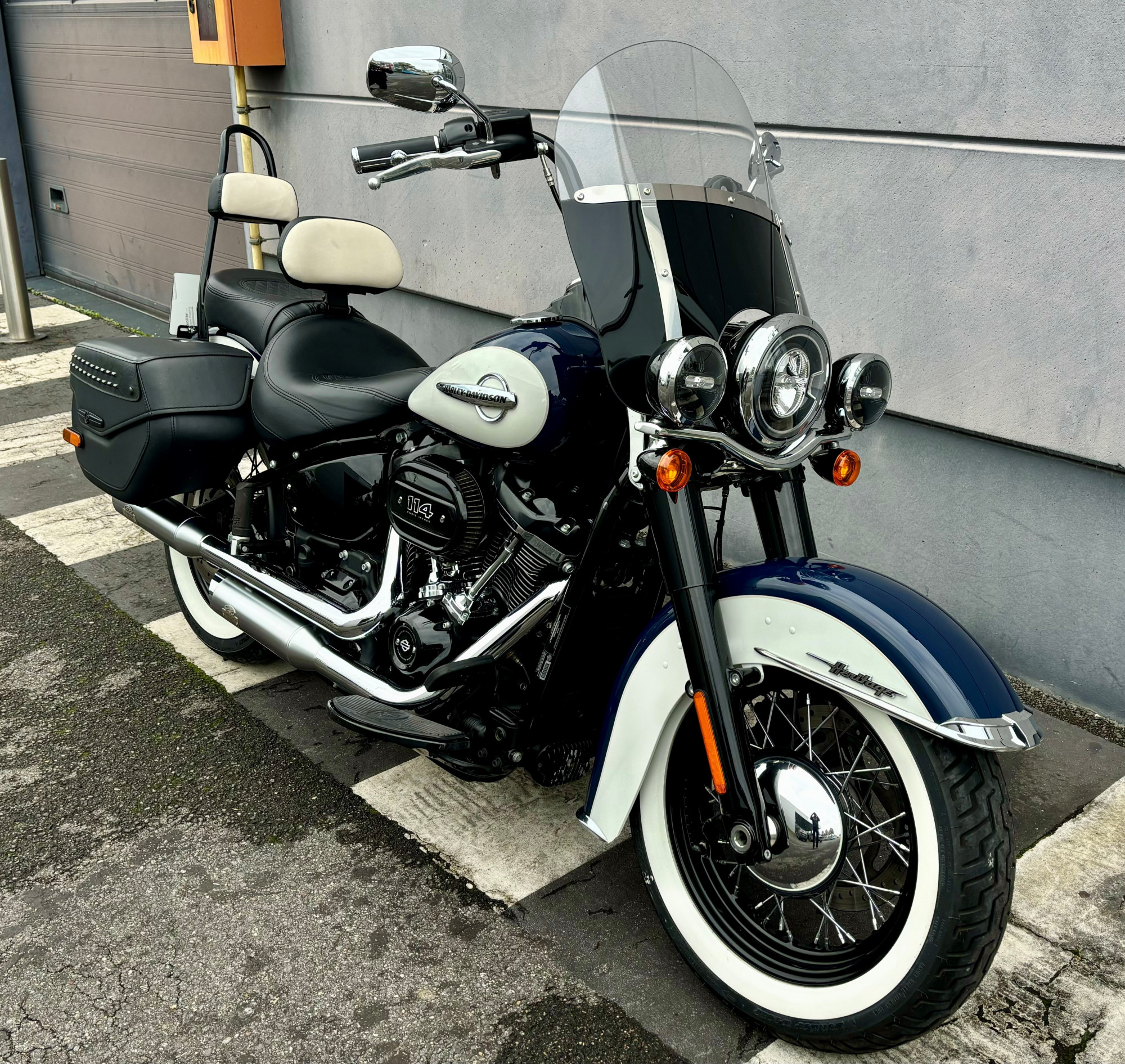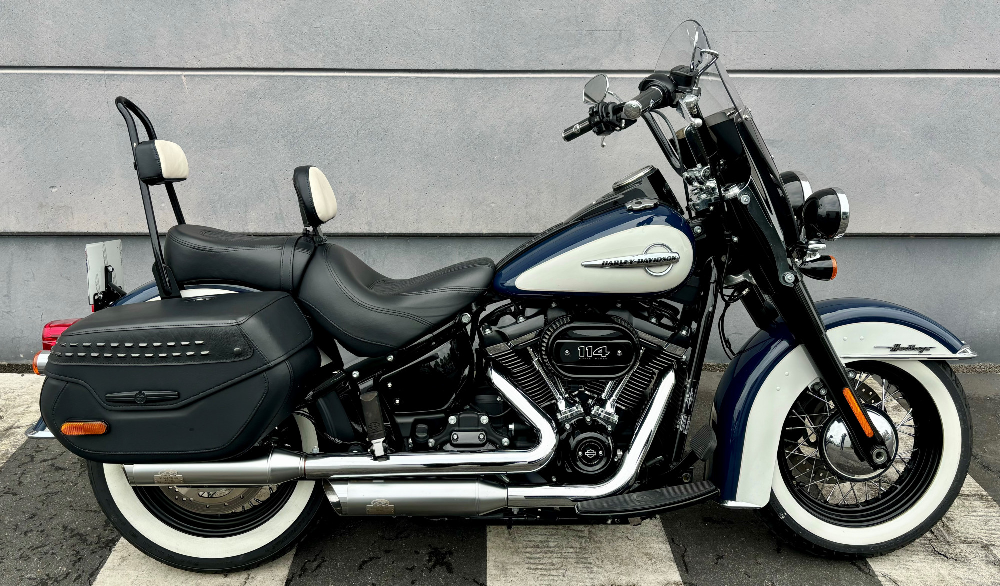 Pots Jekill and Hyde, Selle confort, sissy bar équipent cette Softail Heritage Classic.