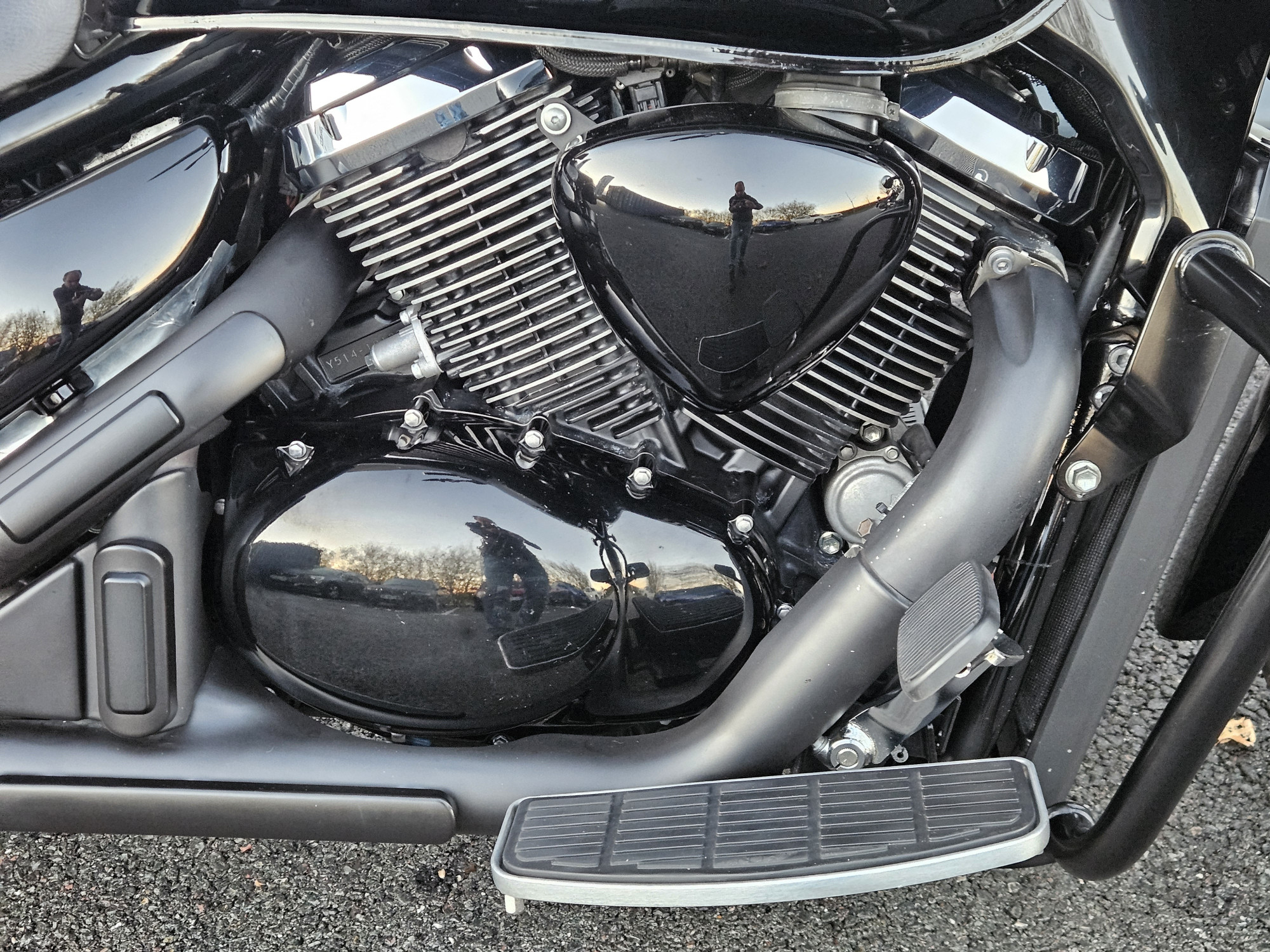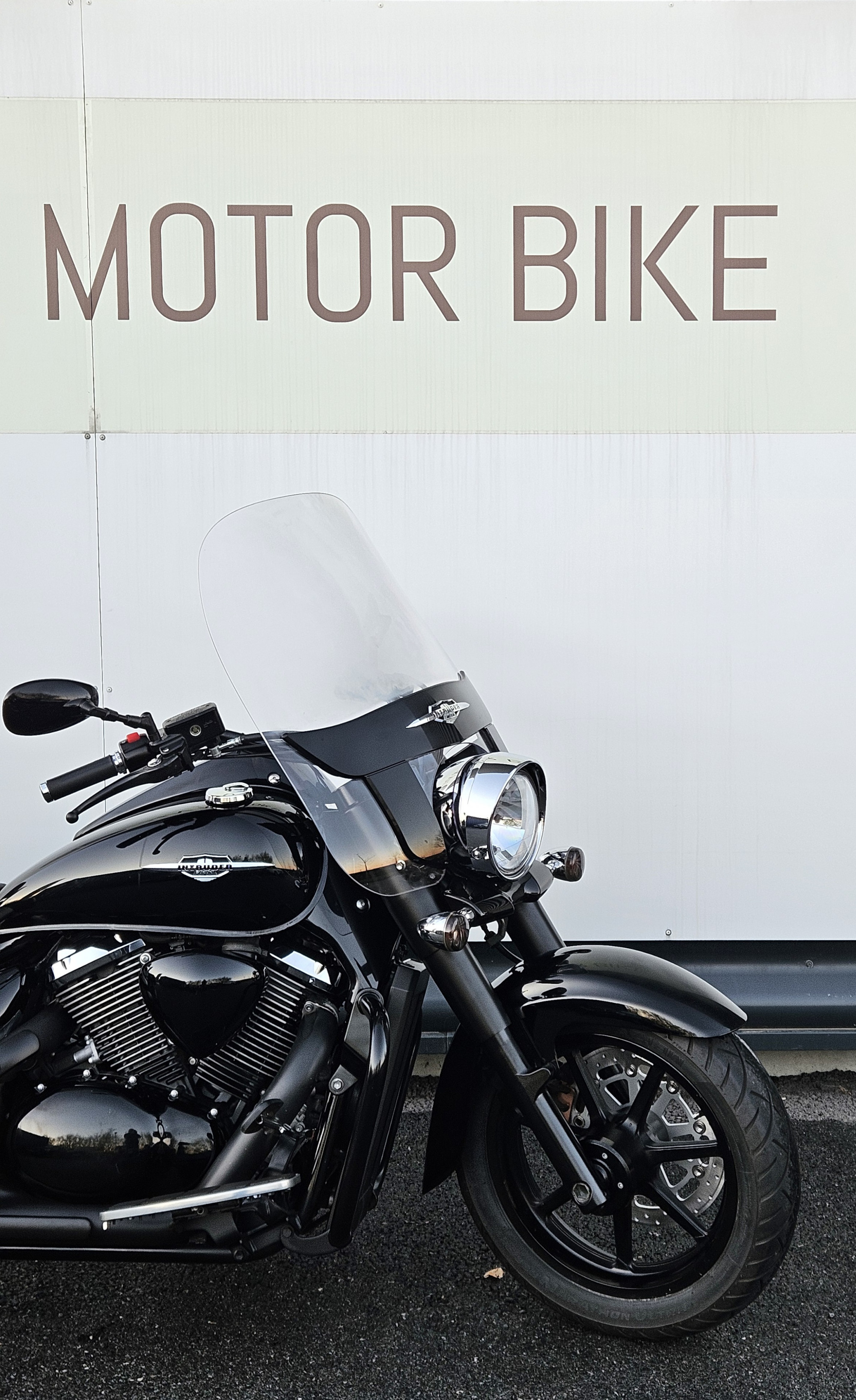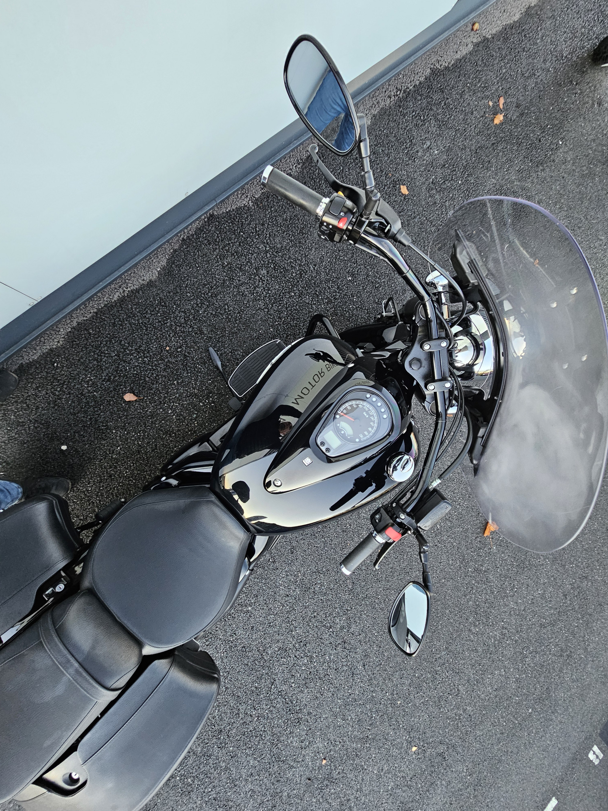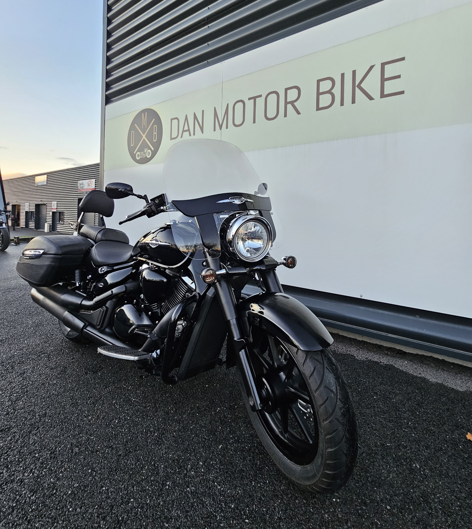 Pare brise haut , pare carter , plateaux marche pied , valises cuir , sissy bar + porte paquet , full black.