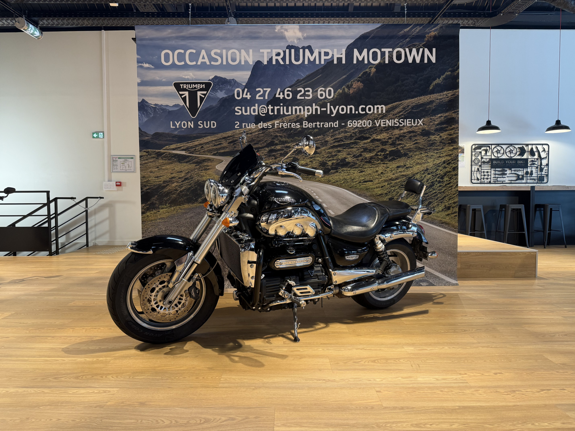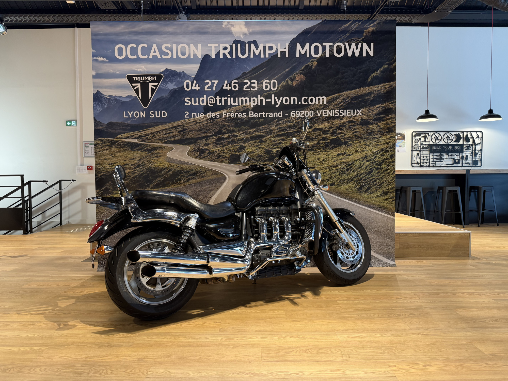 Moto visible à la concession TRIUMPH Lyon Sud au sein du pôle moto mo-town.