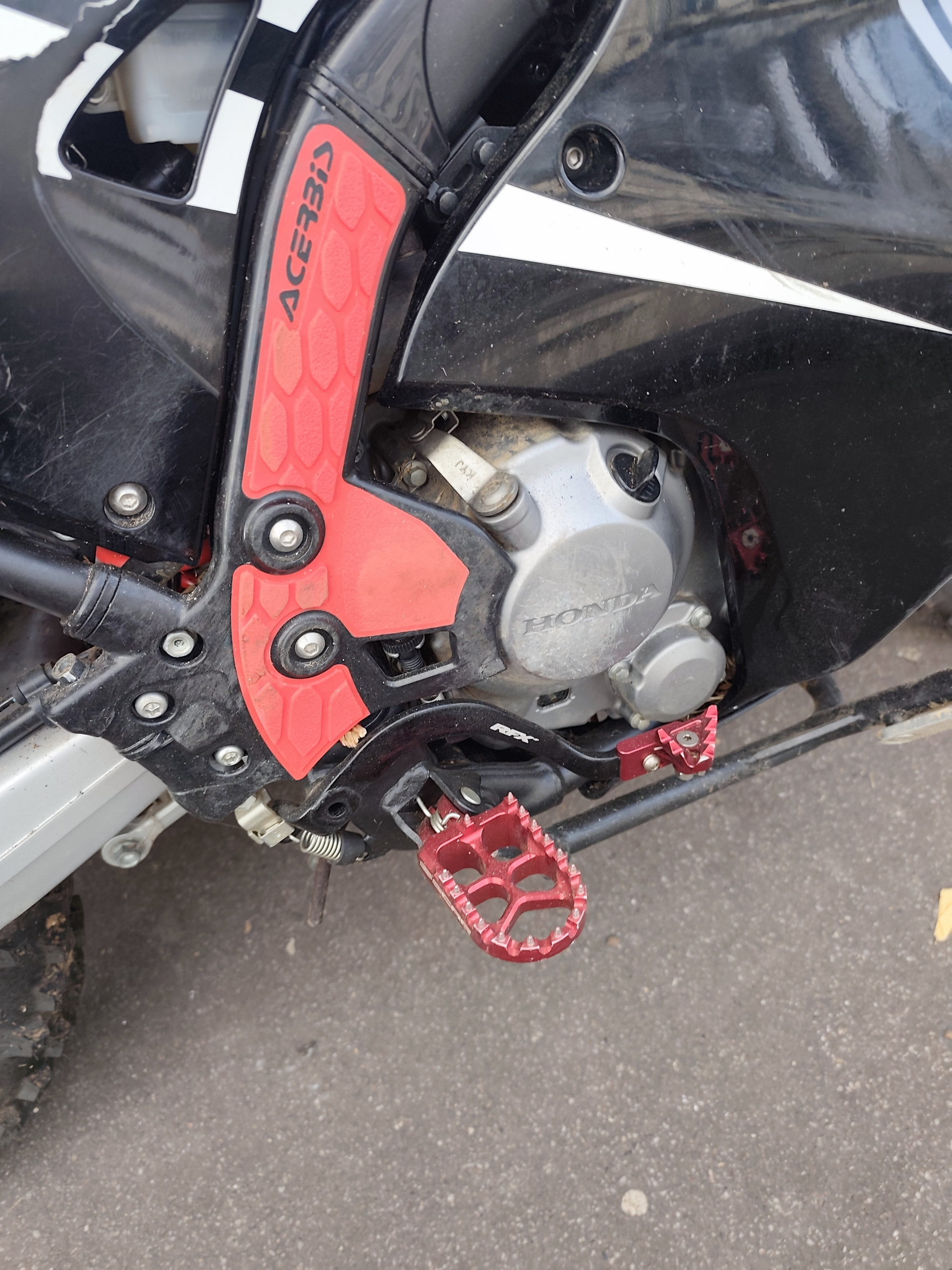 Equipé pour rouler en chemin: pneus crampons Michelin enduro medium, bib mousse, crash bar, pares main, sélecteur, pédale de frein, reposes pieds racing, rehausse guidon, prise usb, support gps garmin.