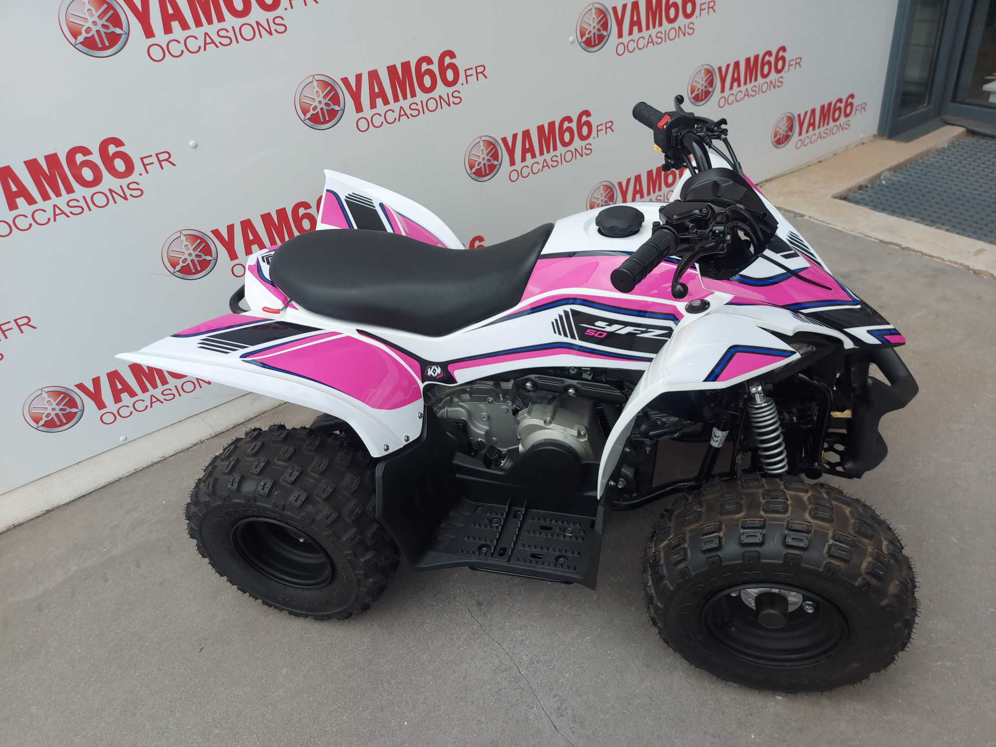 La sécurité étant essentielle, l'YFZ50 est doté d'une panoplie de fonctions offrant aux parents un niveau de contrôle élevé. Sa vitesse peut être limitée par l'intermédiaire d'une vis située au niveau de l'accélérateur ou par un limiteur de régime. D'autre part, un cordon fixé à un coupe-circuit peut couper le moteur instantanément.