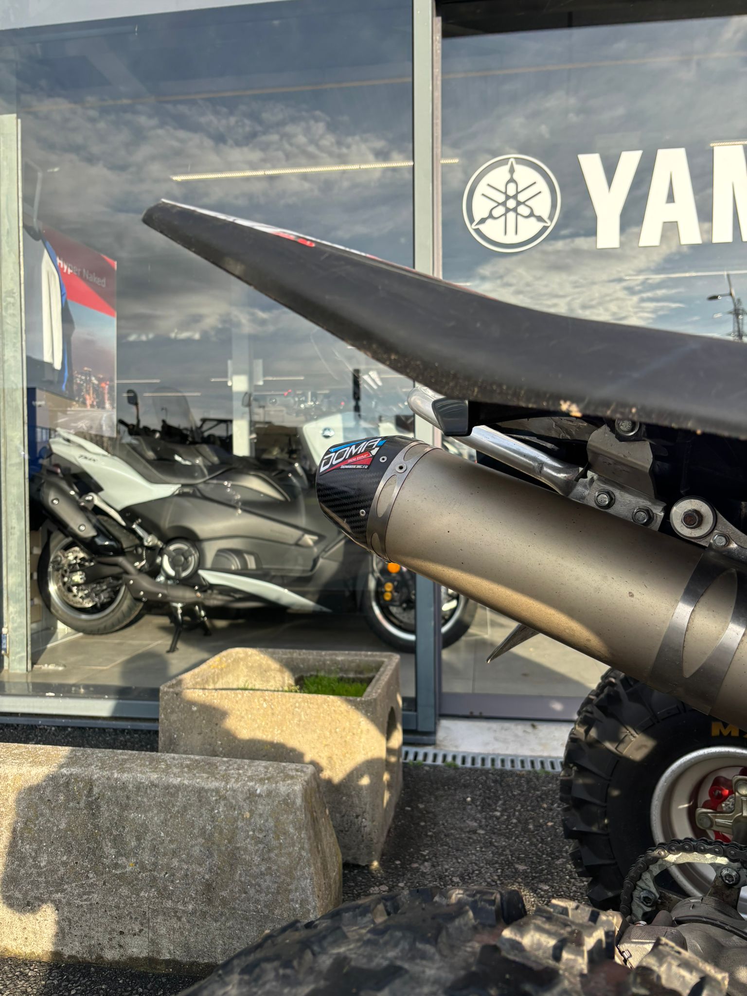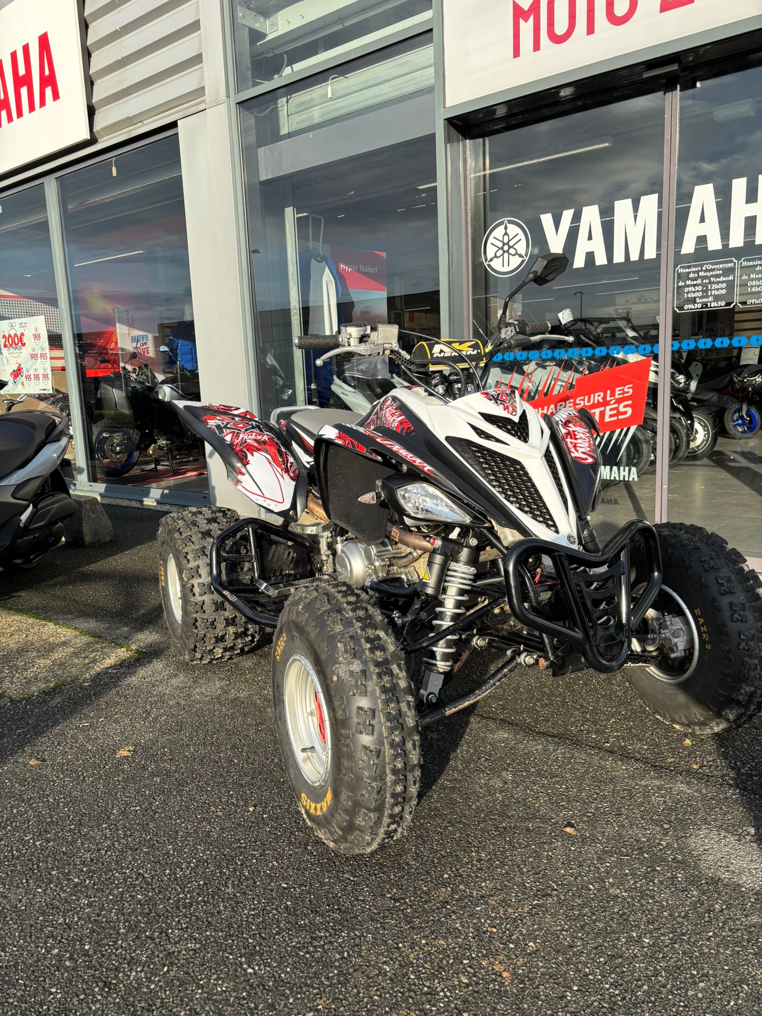 Equipement : Echappement Doma, Kit déco, feux avant Leds, Nerf bar Artrax, Ponté de guidon, Guidon.