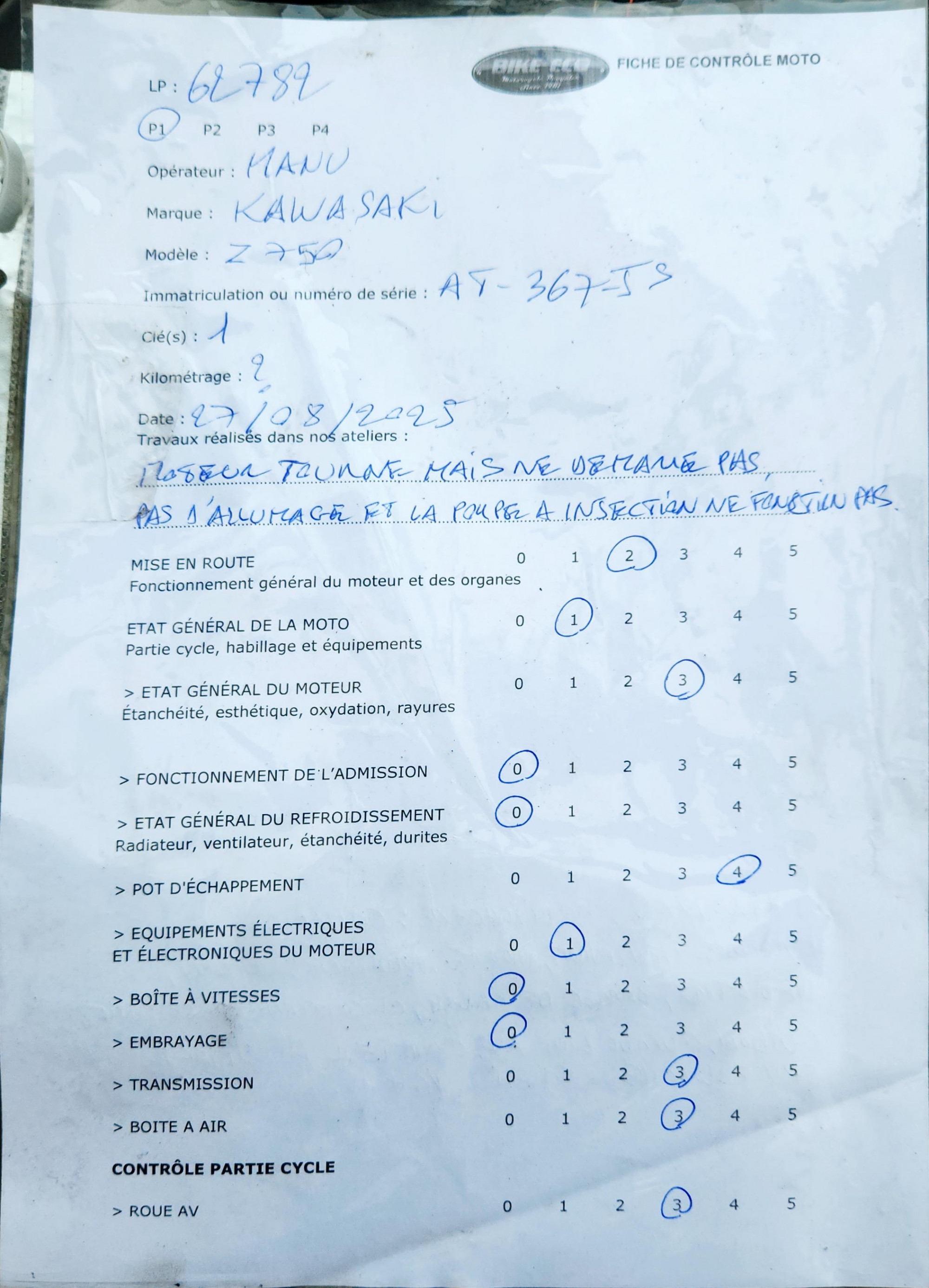 KAWASAKI 750 Z pour GARAGE ou EXPORT uniquement
