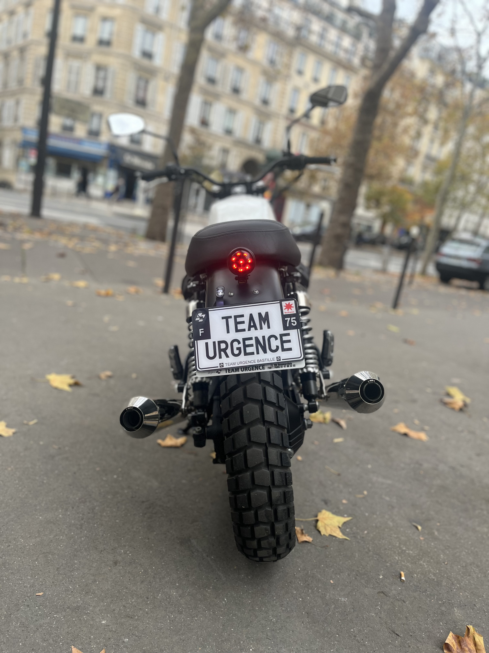 ACCESSOIRES : LIGNE ECHAPPEMENT MISTRAL CHROME + COMPTEUR PERSONNALISE + AMORTISSEUR + CLIGNOTANT INTEGRE GUIDON.