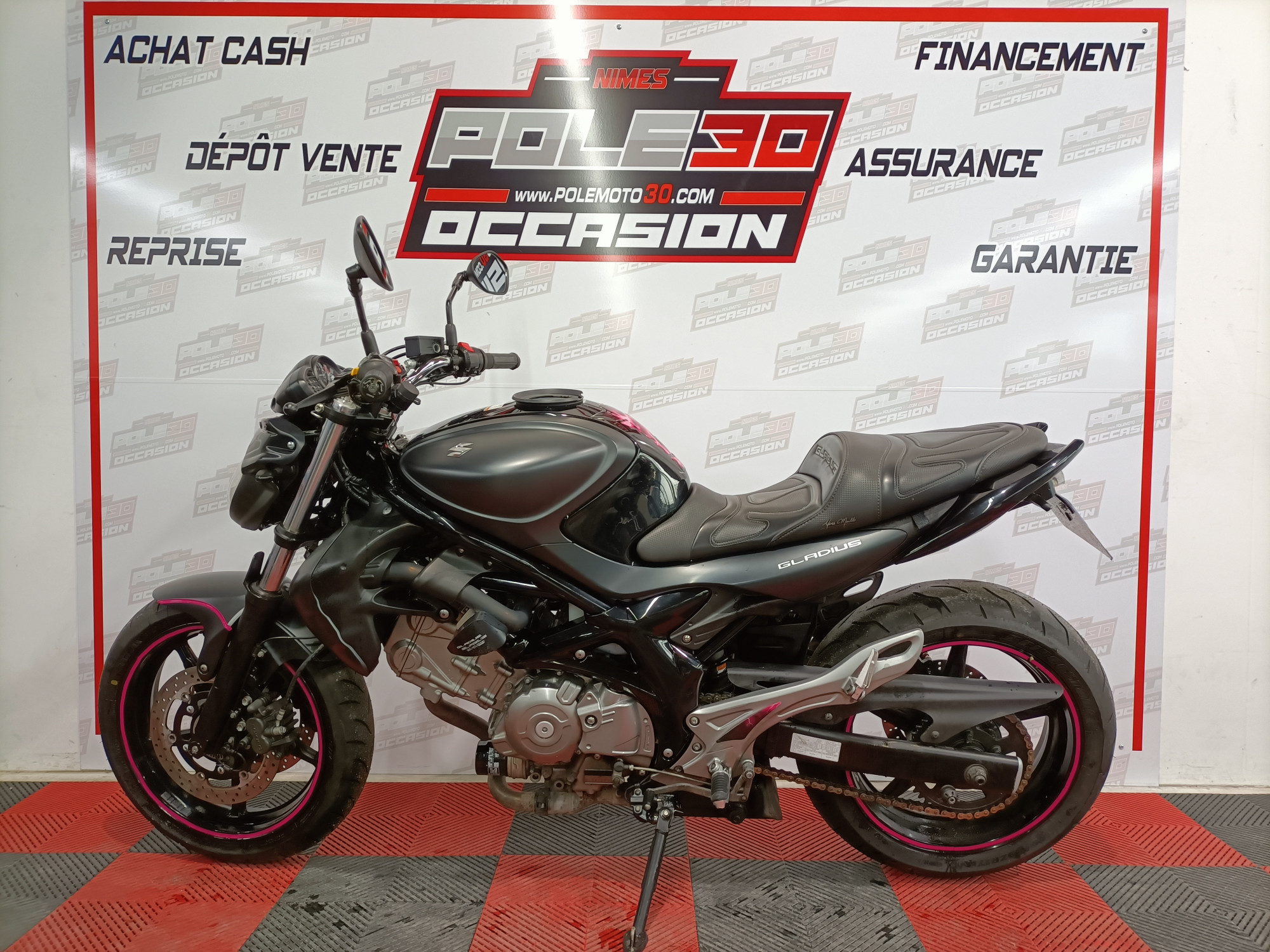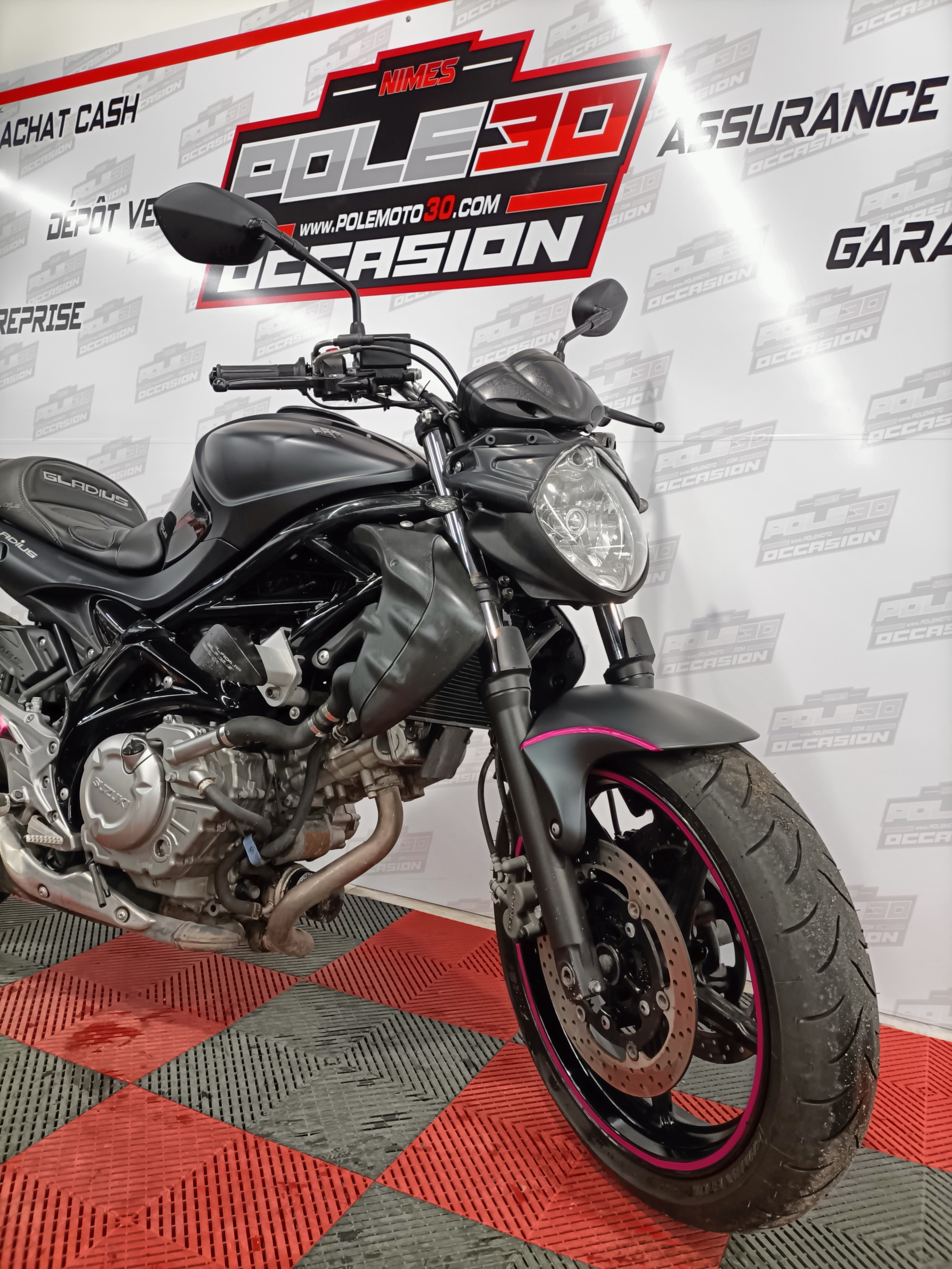 Très belle Suzuki Gladius 650 du 31/03/2015 avec 51050 klms en très bon état, équipée d'une selle comfort, de poignées chauffantes, d'un kit de rabaissement, de top block, prise usb, support de plaque court et support sacoche tank lock, la moto sera révisée et garantie 1 an pour la vente.