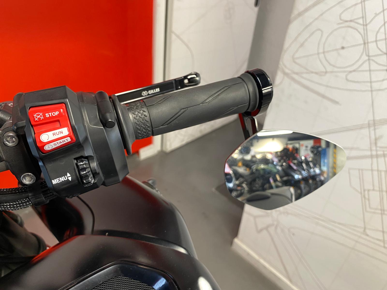 Moto équipée d'une ligne Complète Akrapovic, Shifter Up & Down, Support de plaque court, Rétroviseurs embout de guidon, Leviers "Gilles".