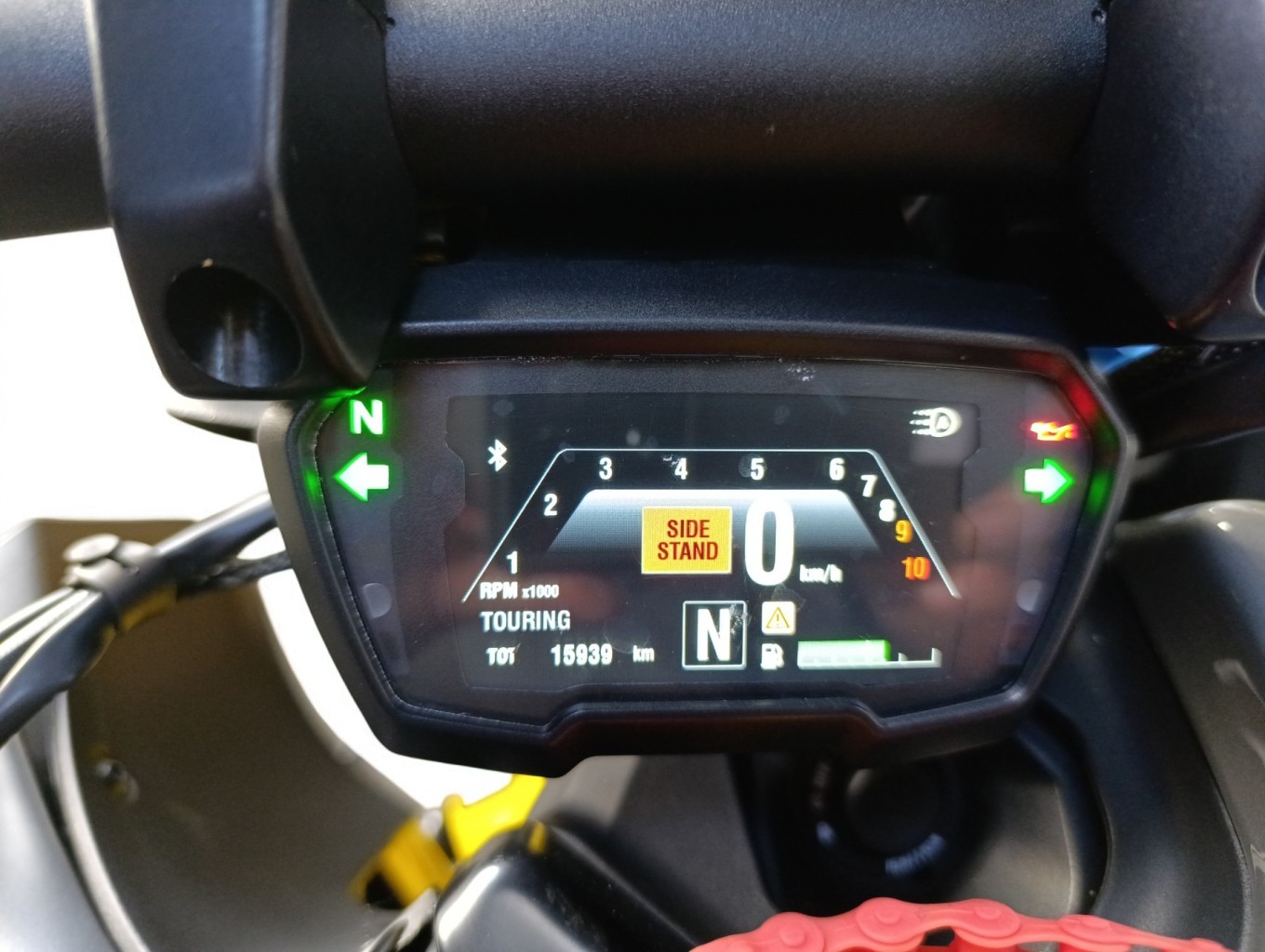 Fourche ok, cadre ok, moteur ok, mise en route non, commodo gauche hs et fil antiparasite manquant.