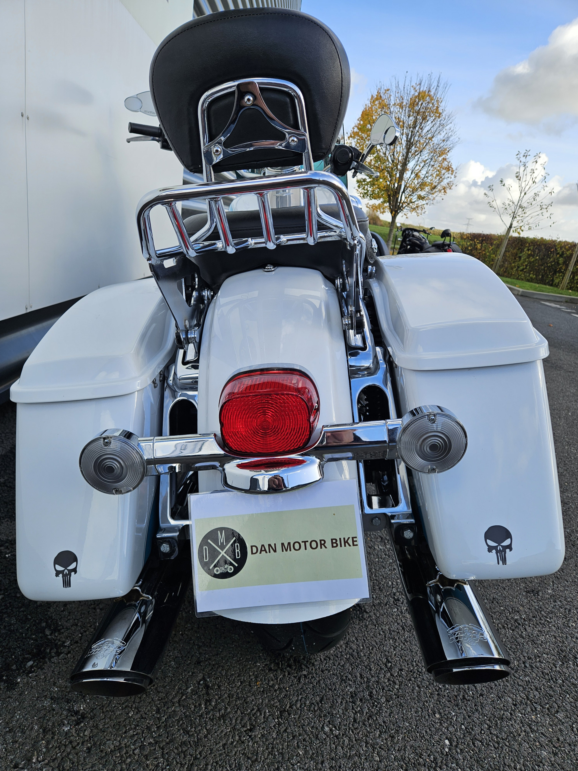 Pare brise haut démontage rapide , éclairage full led avec feux additionnels , pare carter avec protege jambes et vide poches , plateaux repose pied pilote et passager , protège valises , stage 1 filtre à air gros débit & échappement Vance & Hiness , sissy bar avec porte paquet ,double sélecteur de vitesse , régulateur de vitesse .