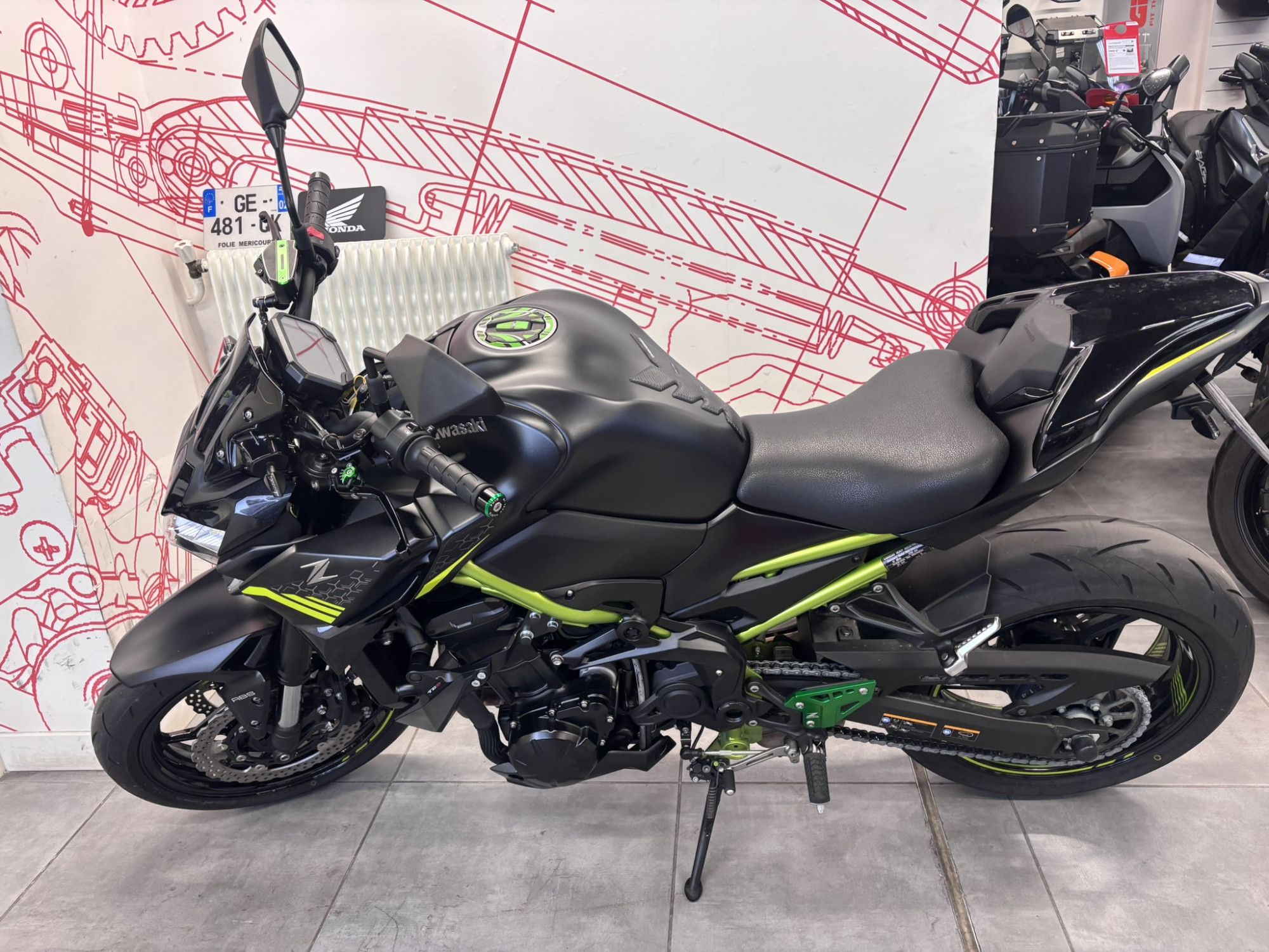 Kawasaki Z900 de Mai 2021 et de 1ère main totalisant 7073 Kms. La moto est dans un très bel état esthétique et est équipées : d'un échappement SC Project, d'une protection de maitre cylindre arrière KAWASAKI, d'un support de plaque court R&G, d'embouts de guidon PUIG, de levier réglable PUIG ainsi que d'un capuchon de maitre cylindre PUIG