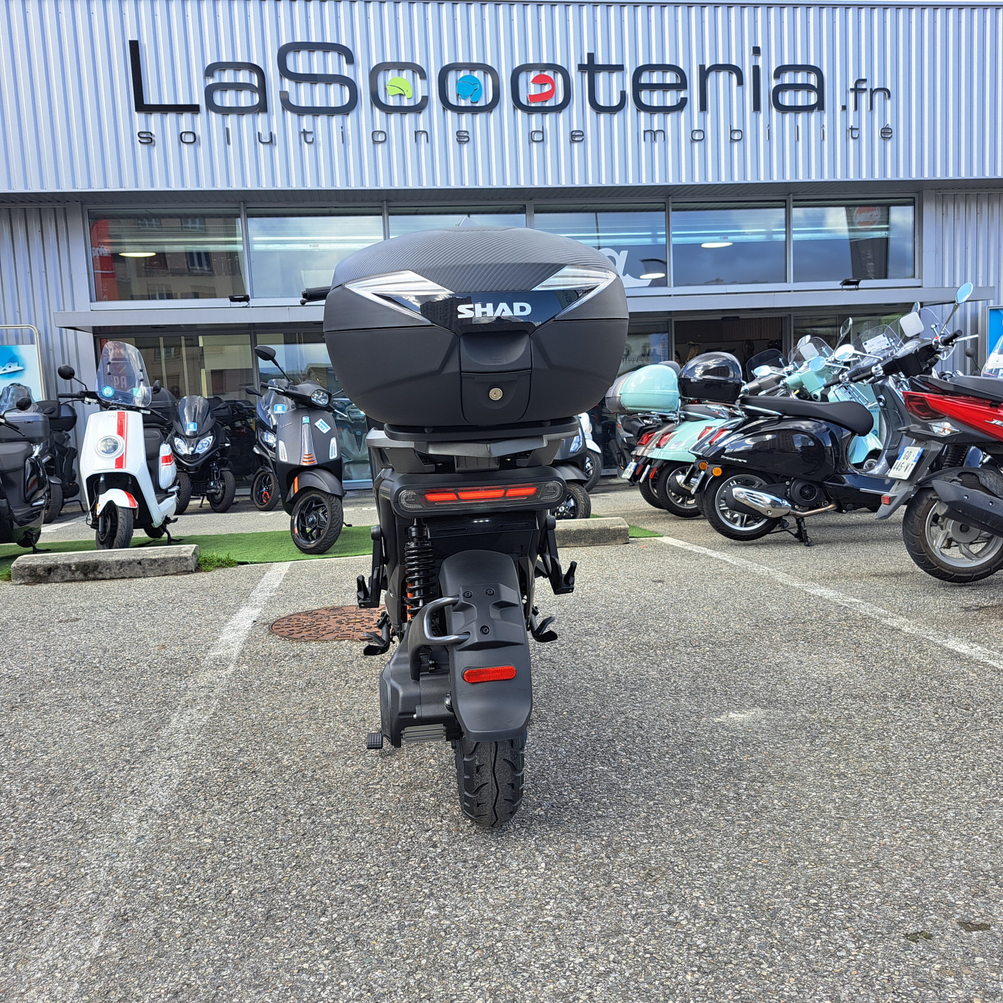 suport de top case integré (top case en option 200€) - PRISE USB - alarme integré - MARCHE arriére