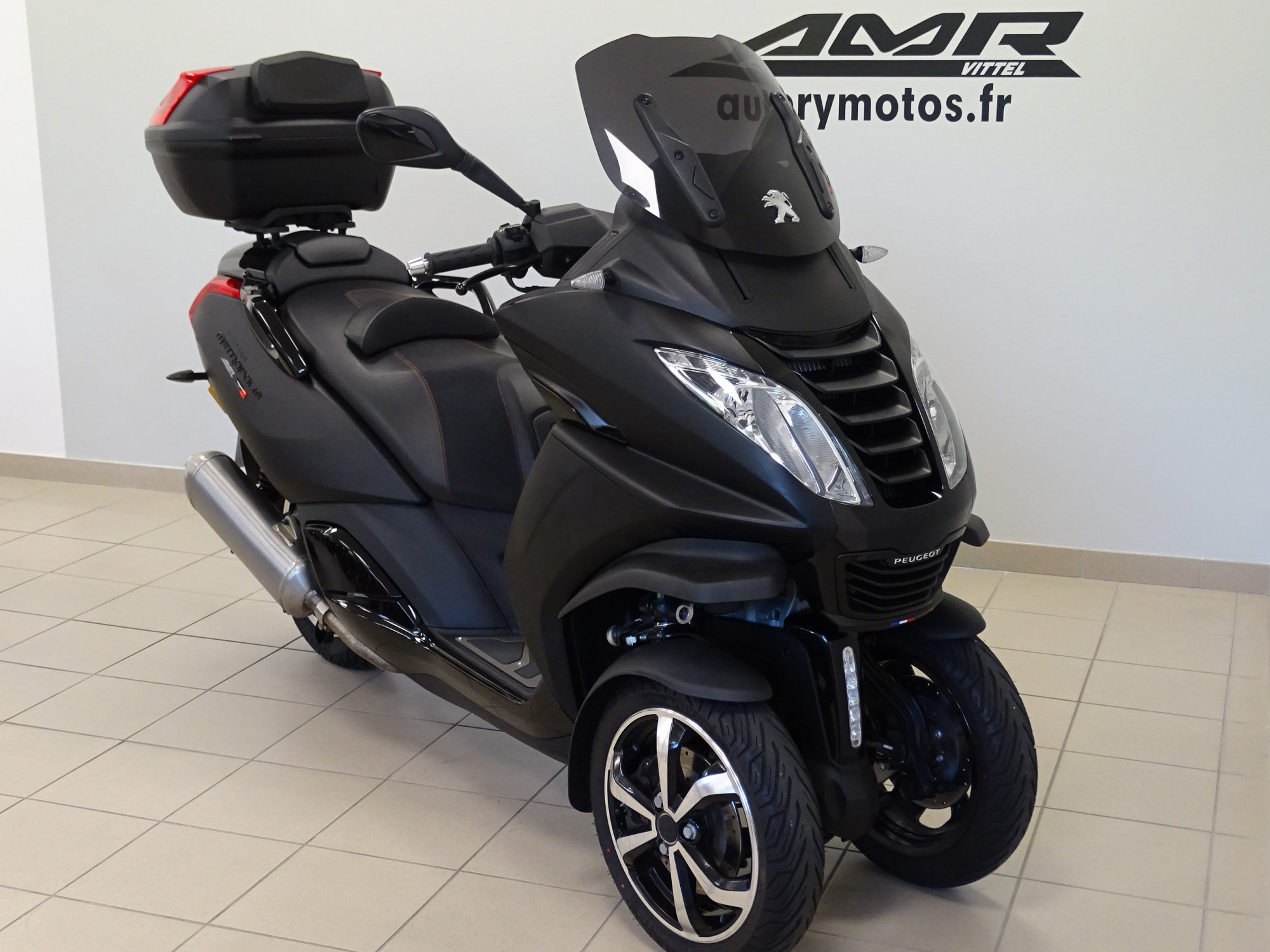 PEUGEOT METROPOLIS 400 BLACK ETAT NEUF - COLORIS MATT BLACK - VENDU NEUF AMR VITTEL - ENTRETIENS REGULIERS AMR VITTEL - dernier entretien fait AMR Vittel 0 KM - accessible permis B avec formation de 7 heures - bulle fumée - porte paquets - top case + dosseret passager - marches pieds aluminium - AMR27692.899.94.