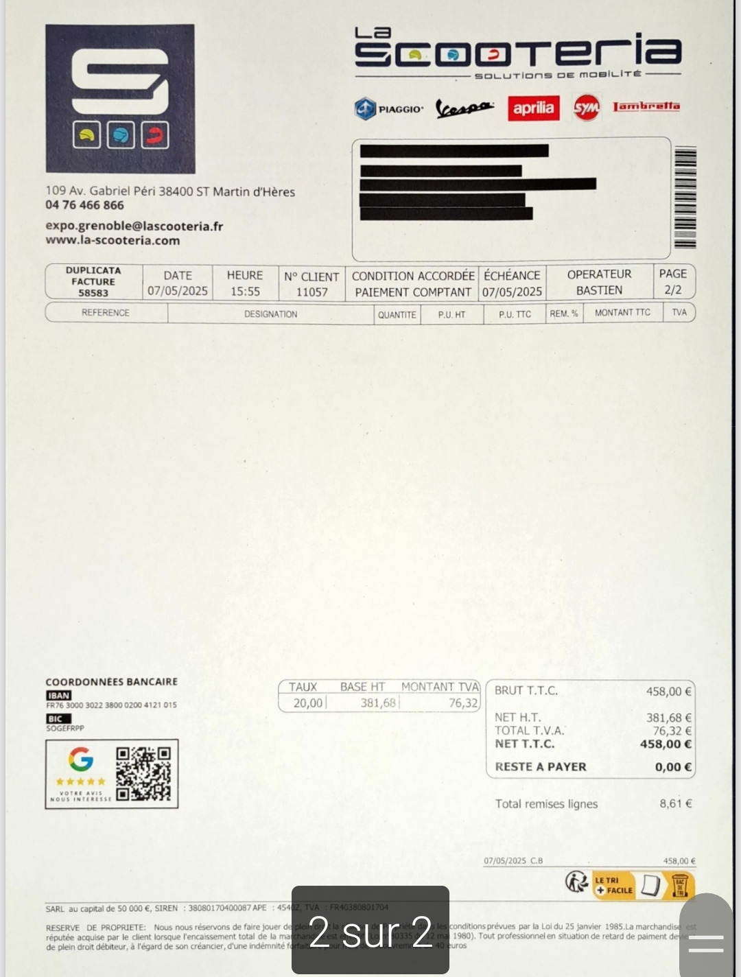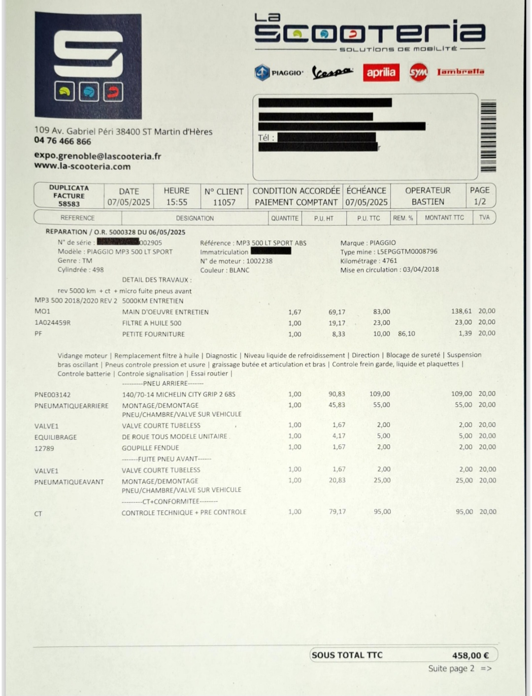 Entretien suivi, factures disponibles.