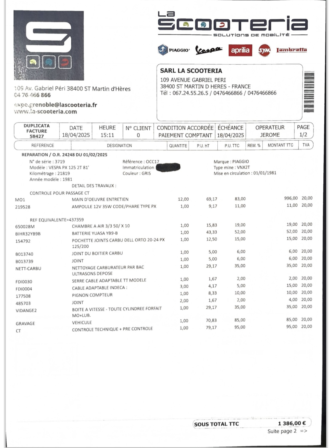 GROS ENTRETIENS À JOURS (voir factures) - CONTROLE TECHNIQUE OK