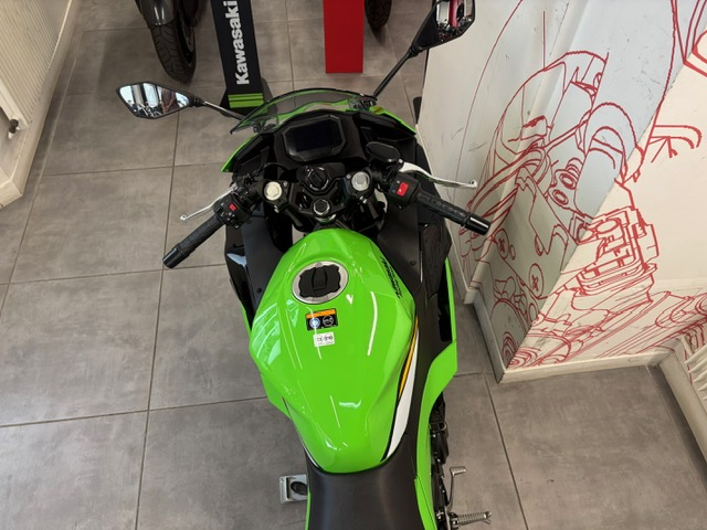 La moto est dans sa version SE qui comprend le coloris exclusif Kawasaki Racing Team, un éclairage full LED, un écran TFT connectivité Bluetooth ainsi que le système clefs mains libre.