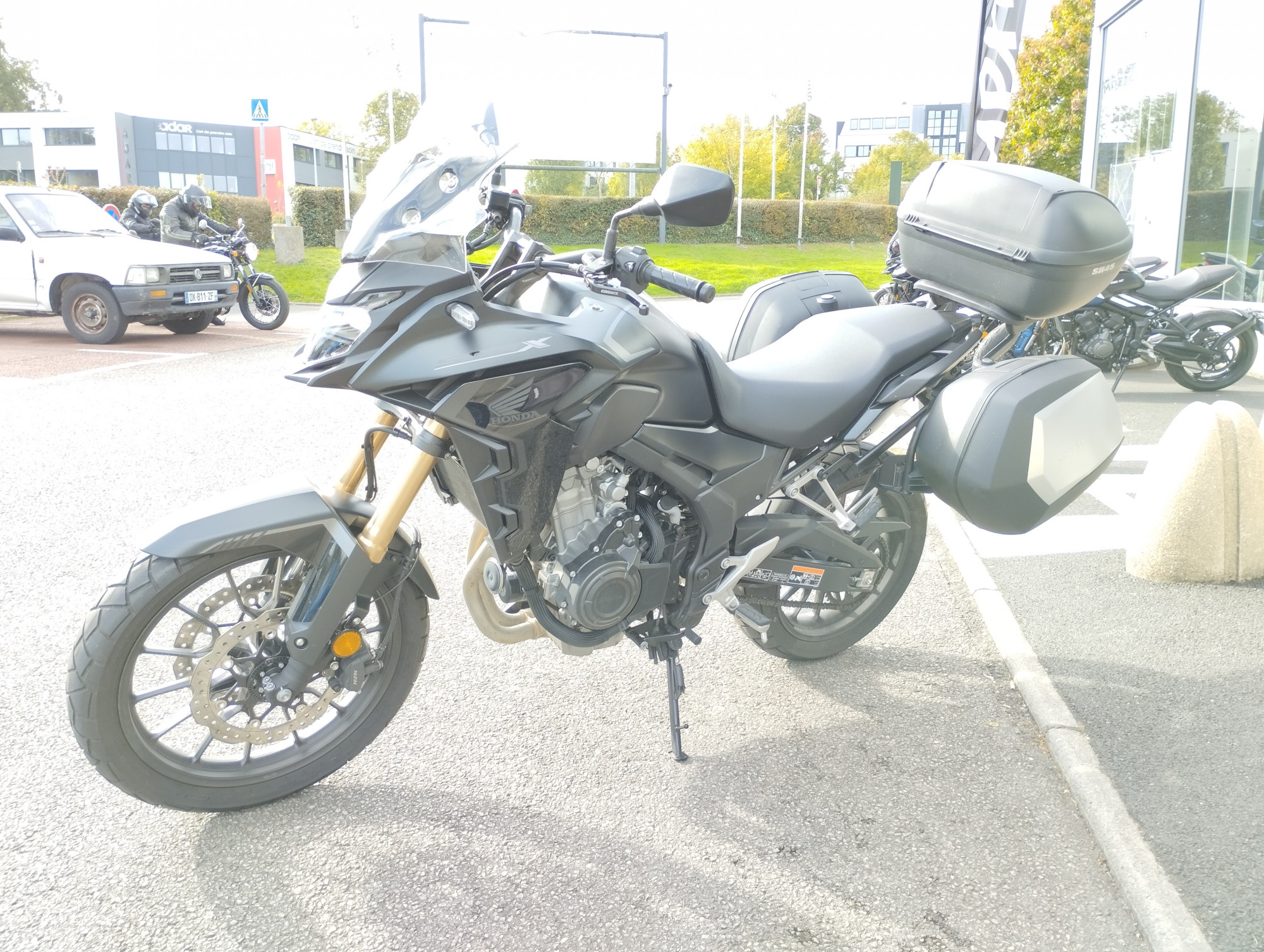 Triumph nantes vous propose cette CB500 X de 2023 noir mat avec seulement 12000 kms. Révision faite, rien à prévoir, garantie contructeur jusqu'en 2028. kit 3 valises SHAD, bulle haute + origine, leviers sport.
