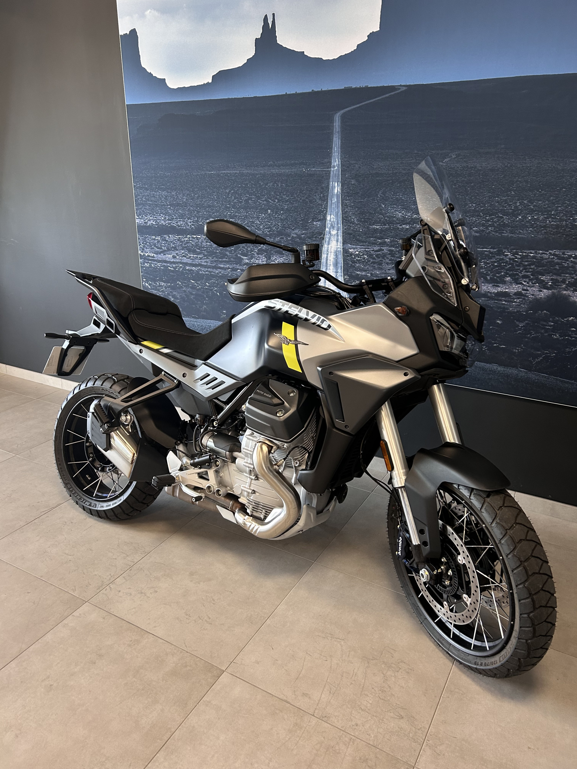La Stelvio est la seule moto d'aventure de son segment à disposer d'un pare-brise réglable électriquement pour s'adapter à la taille et à l'ergonomie de chaque pilote.