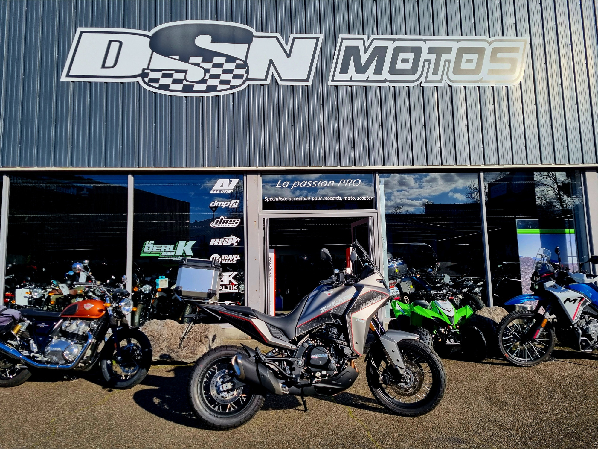 DSN MOTOS GROUPE concessionnaire des marques : KAWASAKI, KL, CF MOTO, ROYAL ENFIELD, KYMCO, SYM, ZONTES, SHERCO, BETA, FANTIC, RIEJU, HM